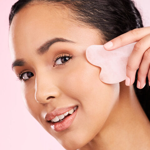Jadélya Rituel Quartz associe le rouleau facial et la pierre Gua Sha en quartz rose pour sculpter, apaiser et sublimer votre peau naturellement.